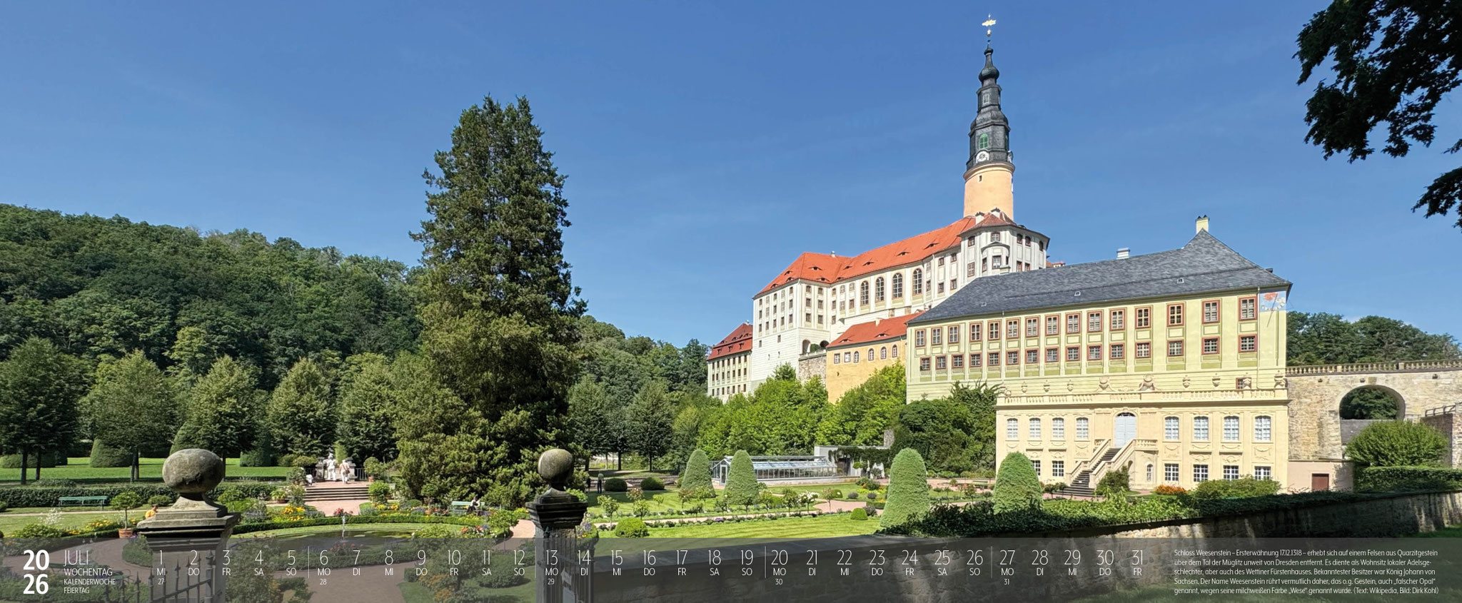 13 eindrucksvolle Aufnahmen Dresdner Sehenswürdigkeiten und seiner Umgebung präsentiert der Weltbuch Verlag in diesem einmaligen Wandkalender für das Jahr 2026. Das Format: 80 x 33/38* cm, im 4-Farb-Druck auf hochwertigem Bilderdruckpapier 170 g/qm, informatives Kalendarium und Bildbeschreibungen auf dem jeweiligen Kalenderblatt, Spiralbindung mit 2-fach-Aufhängung. (*33 cm ohne und 38 cm mit Werbeaufdruck)